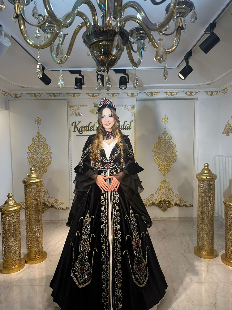 Siyah Kırmızı Taşlı Kaftan Modelimiz