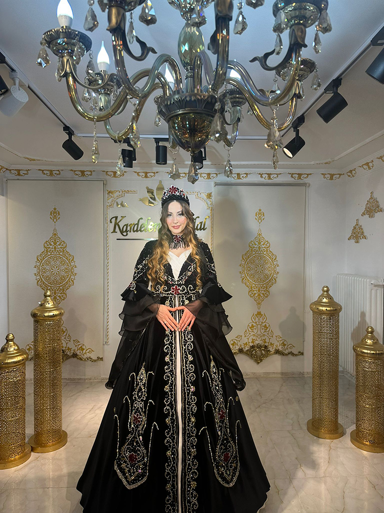 Siyah Kırmızı Taşlı Kaftan Modelimiz